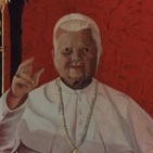 Die Idee, Frauen in religiösen Machtpositionen darzustellen, entstand nach den Arbeiten „in anno dominae“.Da ich die Bilder von weiblichen Christusfiguren extrem spannend fand, ergaben sich die Päpstinnen als ideale Möglichkeit, die geschichtlichen Bilder zu aktualisieren.